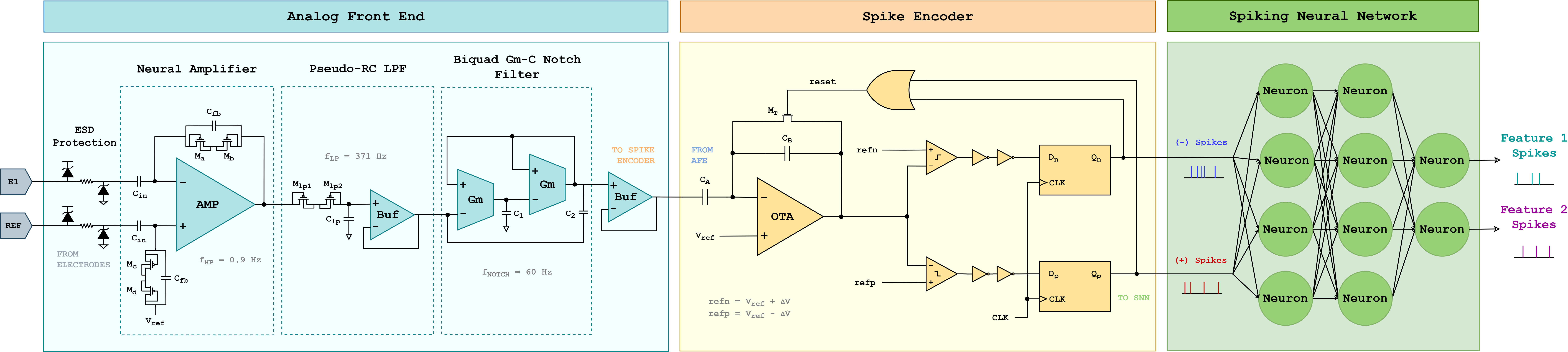 Sleep quality, attentional state, and real-time cognitive assessment are increasingly central to both clinical research and consumer health technologies. Conventional methods for monitoring these parameters often lack the temporal resolution, accuracy, or adaptability required for real-time applications. Eye movements, specifically blink duration and intensity, provide a promising, non-invasive biosignal for continuous tracking of cognitive states. In this work, we present a mixed-signal neuromorphic System-on-Chip (SoC) designed for real-time, low-power decoding of blink-based electroencephalogram (EEG) biosignals. Designed using the open-source 1.8V SkyWater 130nm CMOS process, the system integrates analog front-end circuitry with delta-modulation-based spike encoding and on-chip classification via a Spiking Neural Network (SNN). Our design supports applications in sleep and attention monitoring, cognitive workload analysis, and potential neuromodulation therapies for neurodegenerative and mental health disorders. The platform operates with high computational efficiency, making it ideal for future scaling into wearable and embedded systems. System-level validation was conducted using full-custom layout, simulation with real EEG blink data, and verification via the Cadence Design Suite. The final chip occupies 0.742 mm^2 of a 1.6 mm x 1.6 mm die, consisting of 276,542 transistors, and consumes 63.5 μW in the analog domain and 43 μW in the digital domain.