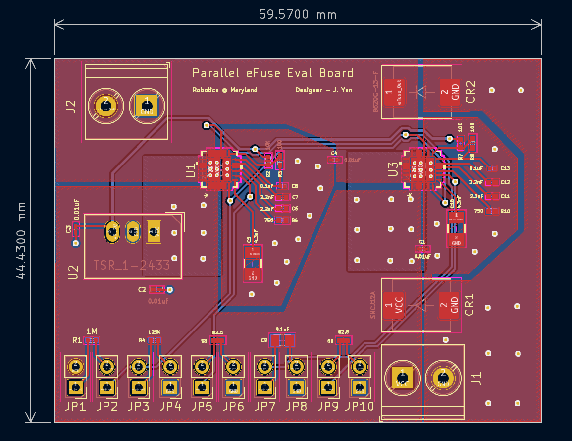 This is a custom 30A paralleled eFuse protection board I built for Robotics @ Maryland.